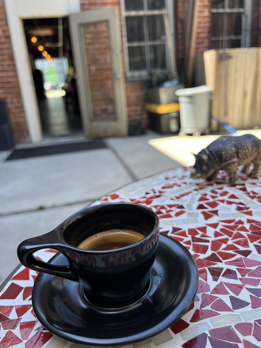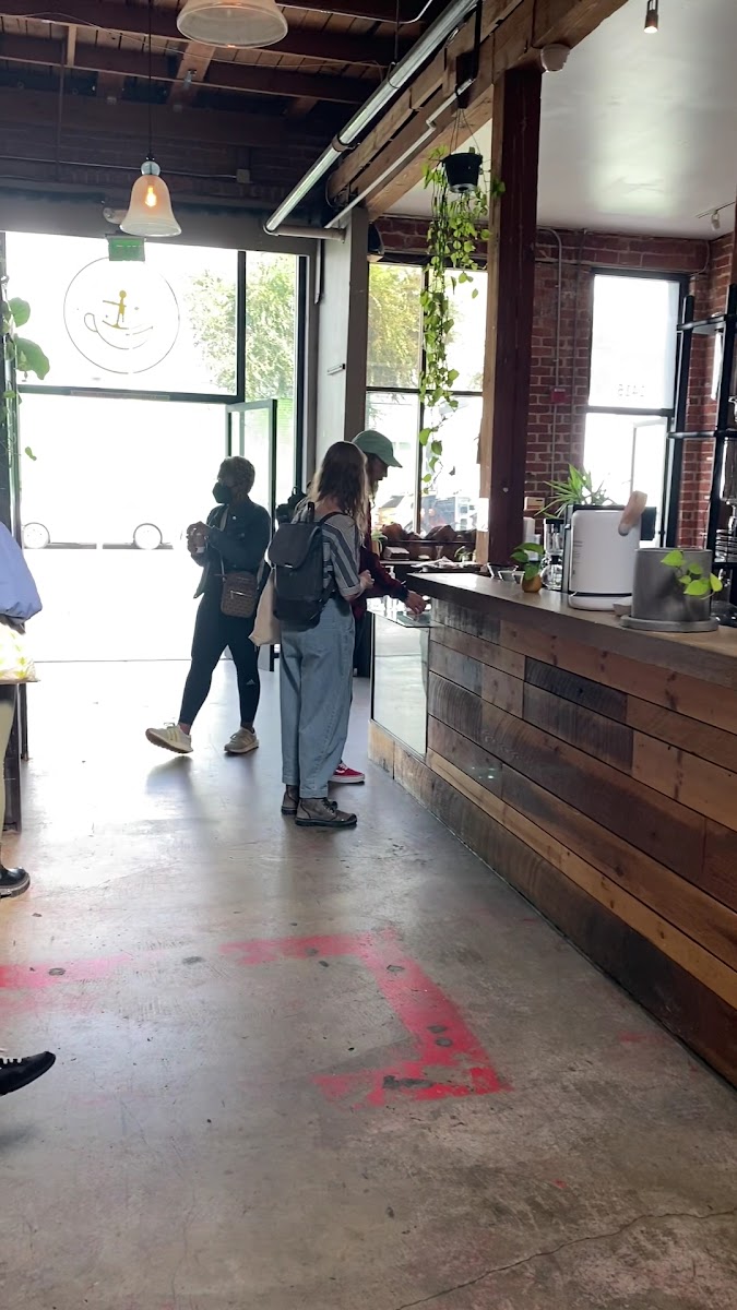 truly a gem in the heart of soma! their beans are excellent, sourced from ethiopia and roasted right there in house! there aren't many roasters, especially black owned roasters in the bay. kinani is sooo knowledgeable about coffee and the industry as a whole. the drink menu is a decent size, there's a little something for everyone. coffee, matcha, chai, dirty chai (or the wired gandhi as they call it). there's also canned beverages and warm pastries available. the space is cozy, with seats nestled along the brick wall. and there's a peaceful backyard - my favorite place to enjoy my beverage.